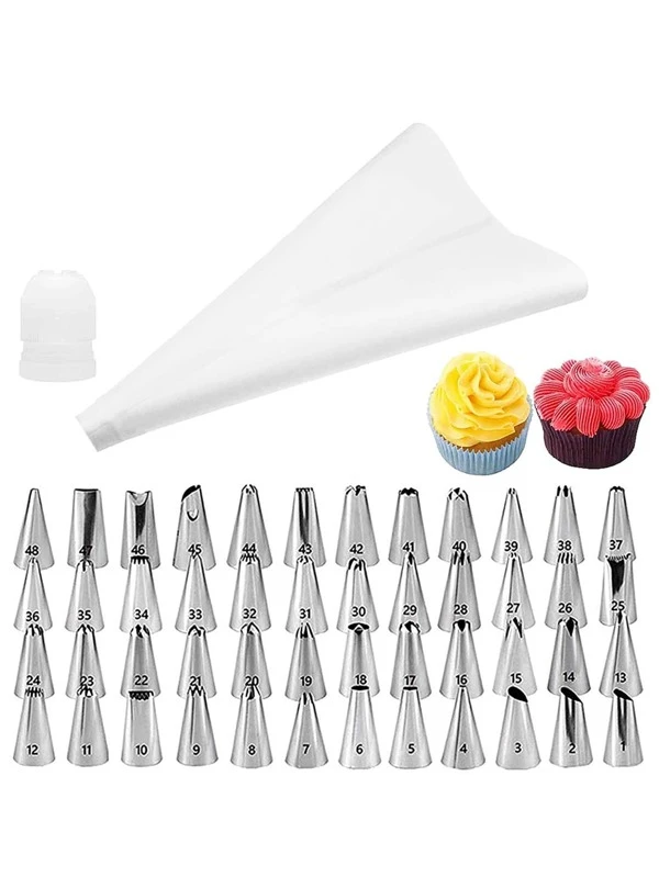 50pcs Piping Bags & Nozzle & Connector Set,Baking Cake Cream Squeezing Set