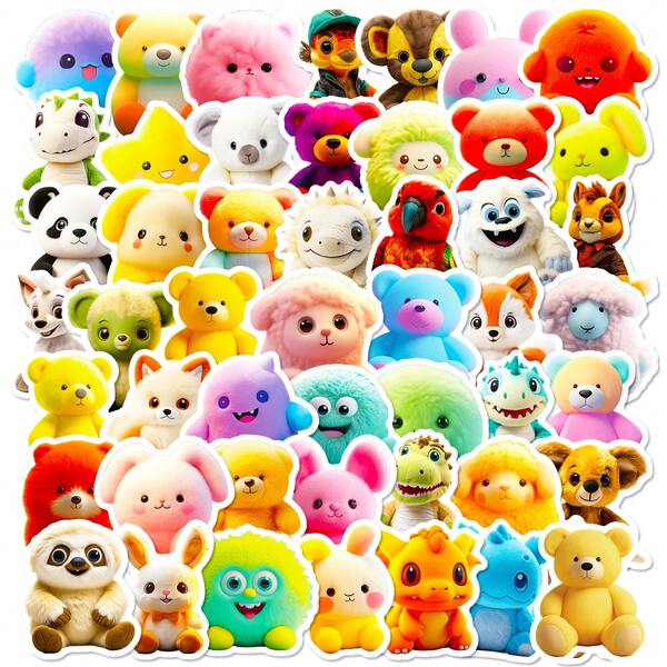 50pcs Plush Animal Stickers, Cartoon Animal Stickers For Water Bottles, Scrapbook, Luggage, Laptops, Skateboards, Cute Animal Vinyl Waterproof Stickers For Girls Boys Teens