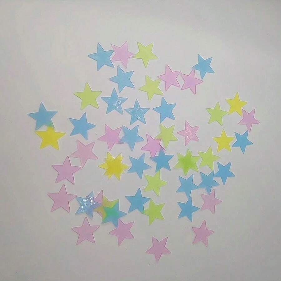 50pcs Random Color Luminous Star Shaped Sticker, 3d Fluorescent Glowing Star-Shaped Wall Decals