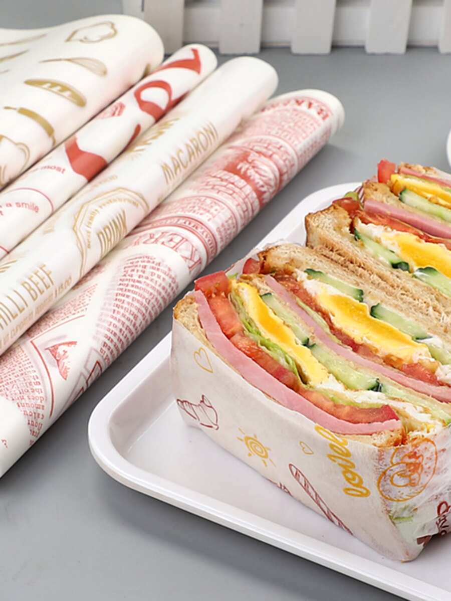 50pcs Random Pattern Sandwich Wrapping Paper, Bread Packaging Paper For Baking