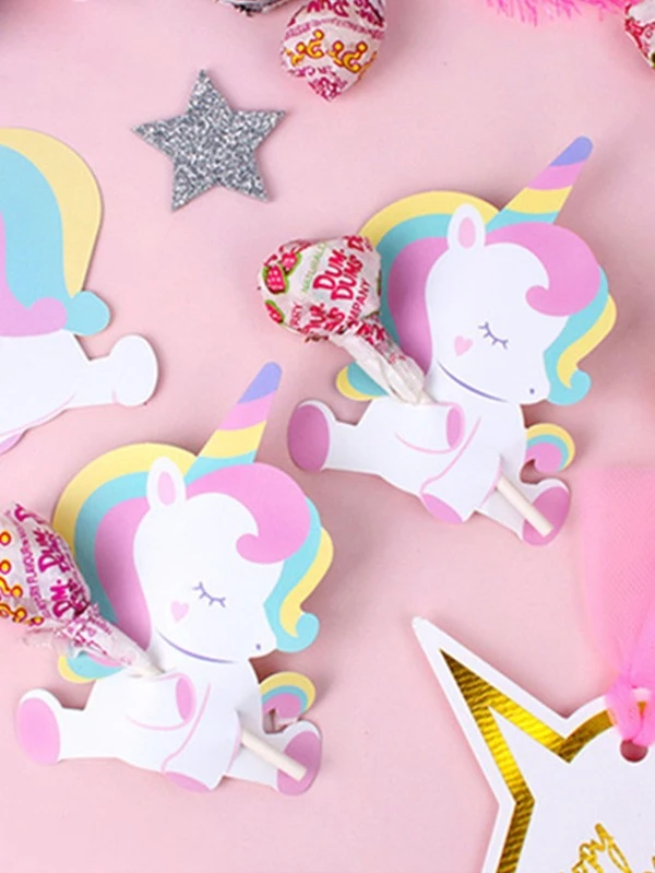 50pcs Unicorn Party Decoration Paper Cards For Diy Lollipop Decorations