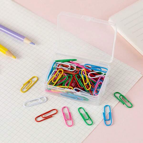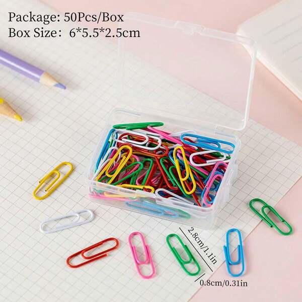 50pcs/Box Pastel Color Paper Clips, 28mm Rainbow Color Creative Shape Metal Bookmark Clips