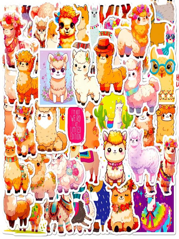 50pcs/Pack Cartoon Llama Cute Animal Pvc Sticker. Suitable For Children'S Luggage, Skateboards, Water Bottles, Computers - Healing Sticker