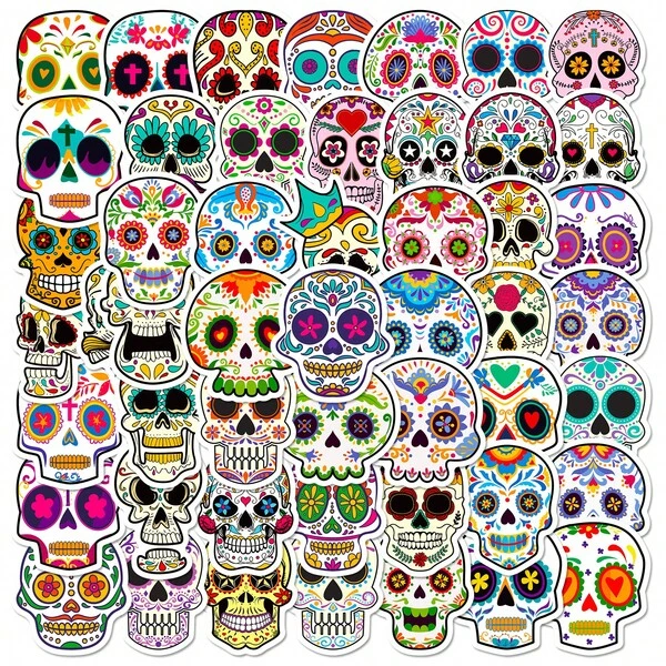 50pcs/Pack Painted Skull Style Waterproof DIY Creative Doodle Stickers, Laptop Phone Case Guitar Skateboard Water Bottles Bumper Helmet Snowboard Luggage Fridge Door Window Home Graffiti Decoration Sticker