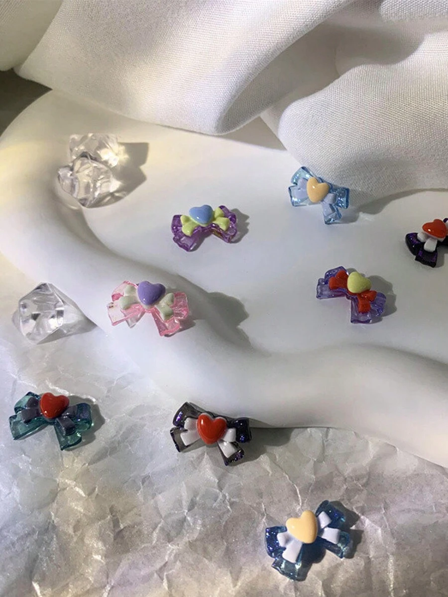 50pcs/Pack Resin Cute Bowknot Design With Transparent Glitter Wings Nail Art Decorations