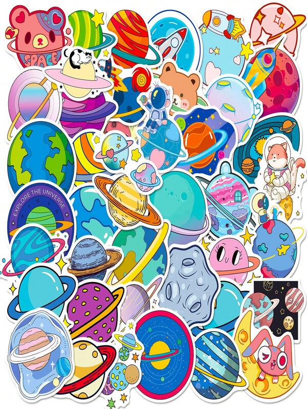 50pcs/Pack Space Planet Pp Stickers Set, Including Comets, Astronauts, And Spaceship Designs Suitable For Decorating Posters, Notebooks, Luggage, And As Children'S Diy Projects