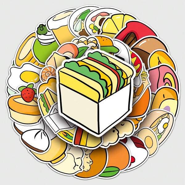 58pcs Cartoon Food Cute And Creative Graffiti Waterproof Stickers