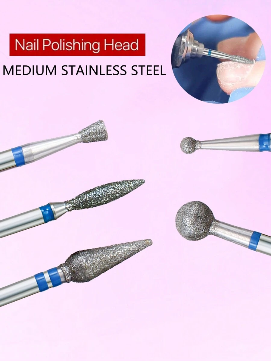 5Pcs Medium Diamond Nail Drill Milling Cutter Nail Art Drill Bit Cuticle Clean For Manicure Nail Files Electric Mills Burr Grinder Tool Nail Polishing Head Nails Rotary Nail Drill Machine Manicure Pedicure Polishing