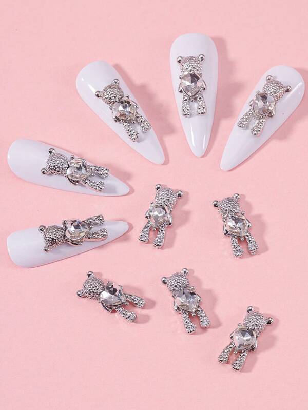 5Pcs Shiny Alloy Bear With Heart Crystal Luxury Rhinestone Jewelry Manicure Design Accessories For 3D Nail Art Decorations