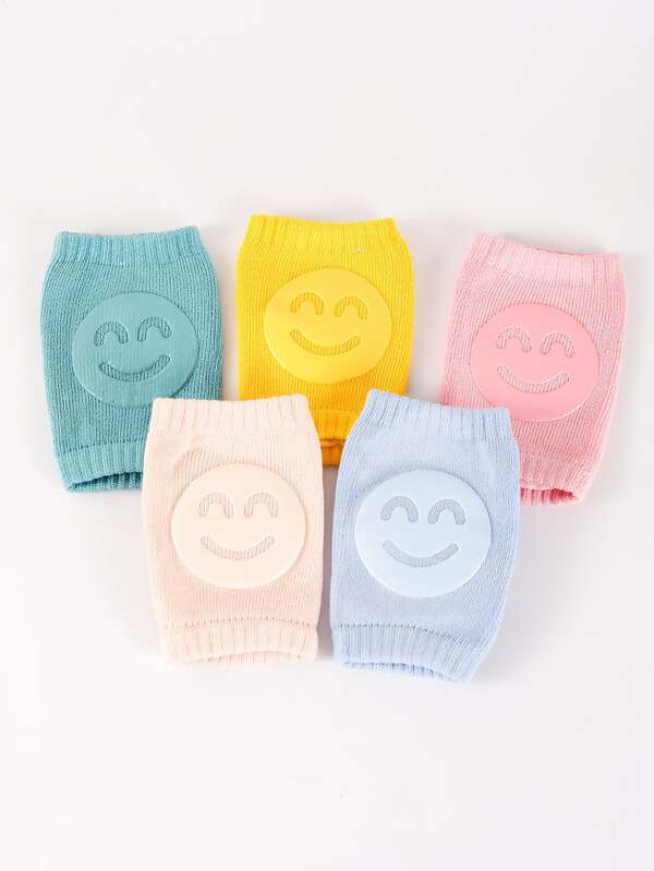 5pairs Infant Toddler Baby Protective Socks Set For Crawling Walking, Including Knee Pads, Elbow Pads And Socks With Smiling Faces Pattern