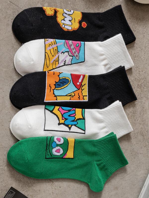 5pairs Men Letter & Heart Print Fashionable Crew Socks For Daily Life