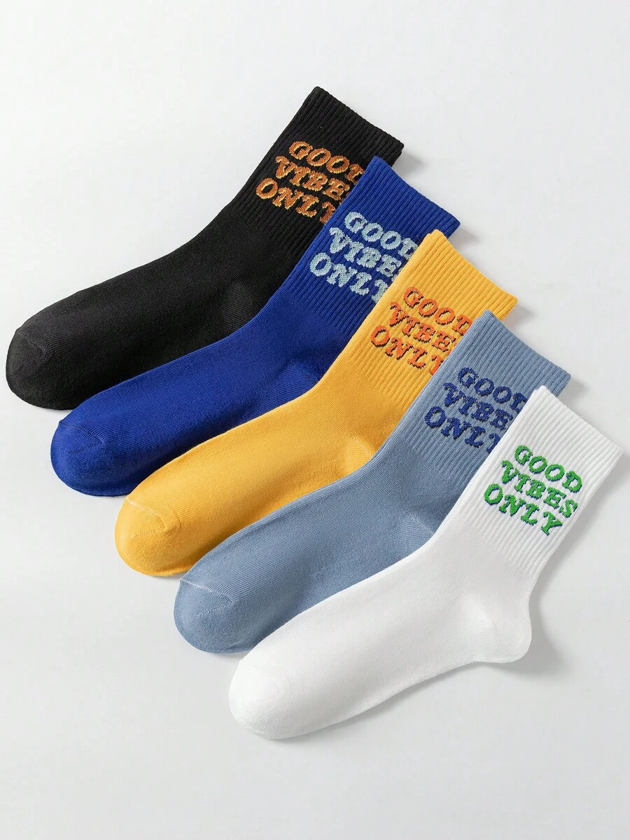sosiwon 5pairs Men Letter Graphic Fashion Crew Socks For Daily Life