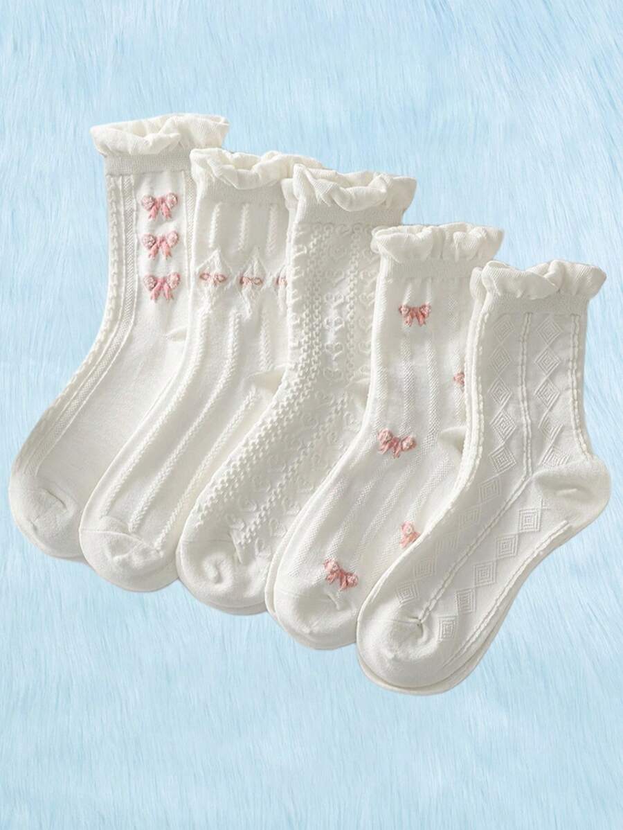 ROMWE Kawaii 5pairs Women Bow Pattern Crew Socks
