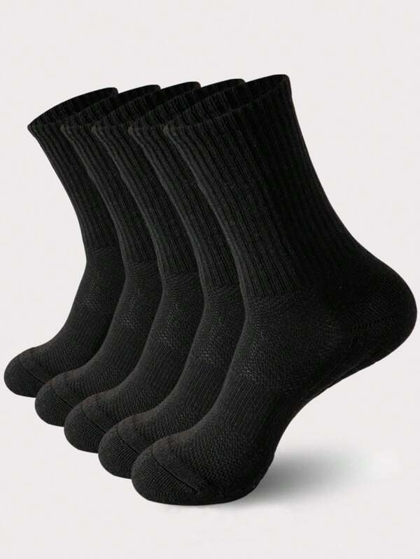 5pairs Women Minimalist Solid Fashion Sports Socks For Daily