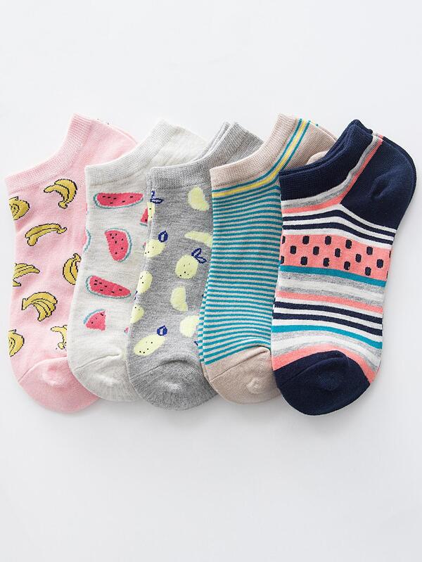 5pairs Women Watermelon & Striped Pattern Casual Invisible Socks For Daily Decoration