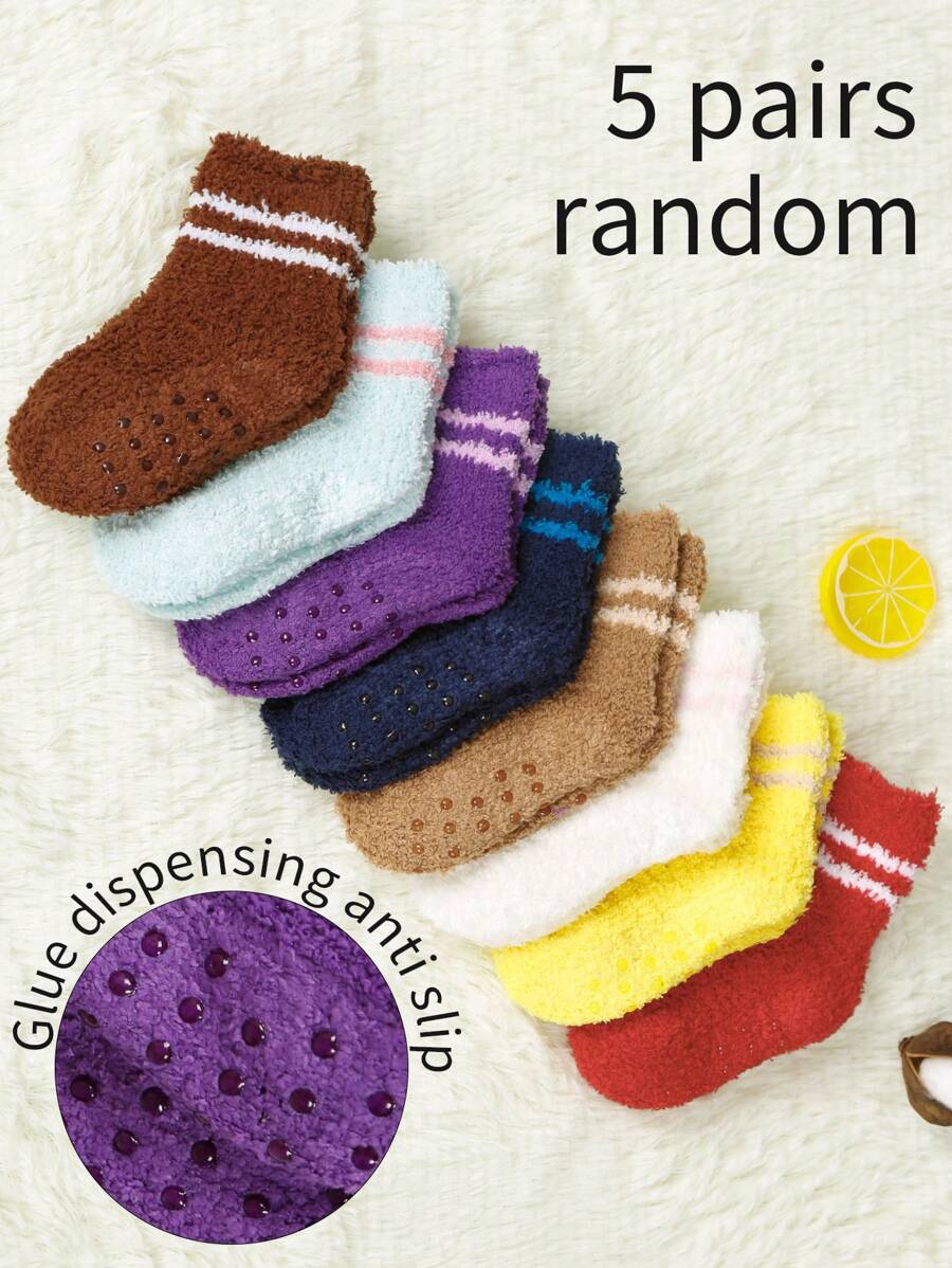 5pairs/Pack Random Color Anti-Slip Sports Socks For Infants, With Coral Fleece Lining For Cold Weather And Daily Wear, 5pairs/Pack Random Color