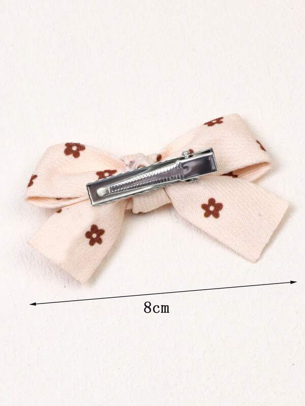 5pairs Girls' Brown Flower Printed Hair Clip, Leopard Printed Bow Hair Barrette, Grid Patterned Fabric Hair Accessories, Suitable For Daily Life Or Vacation