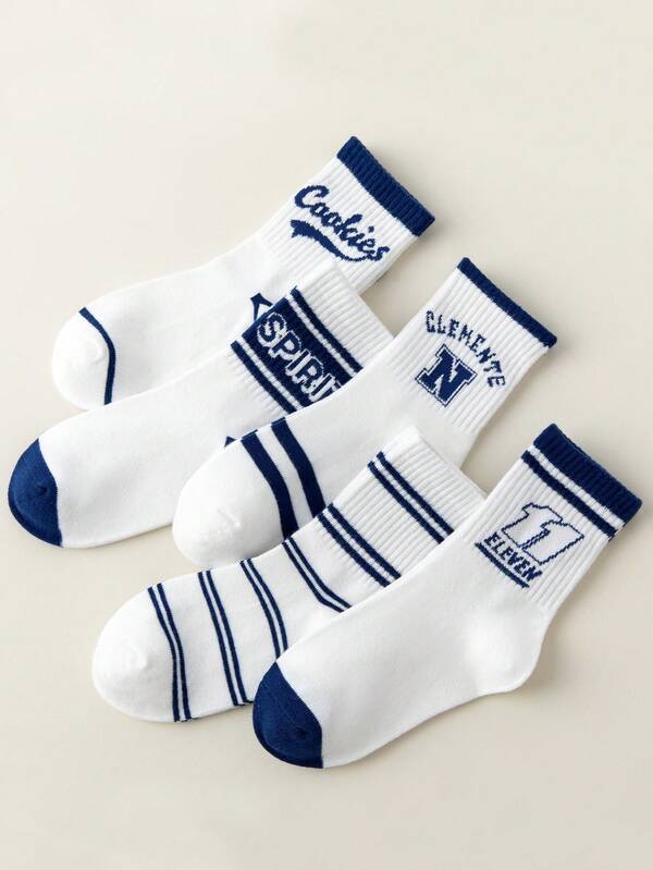 5pairs/Set Simple Striped & Letter Pattern Sporty Comfortable Kids Socks Suitable For All Seasons