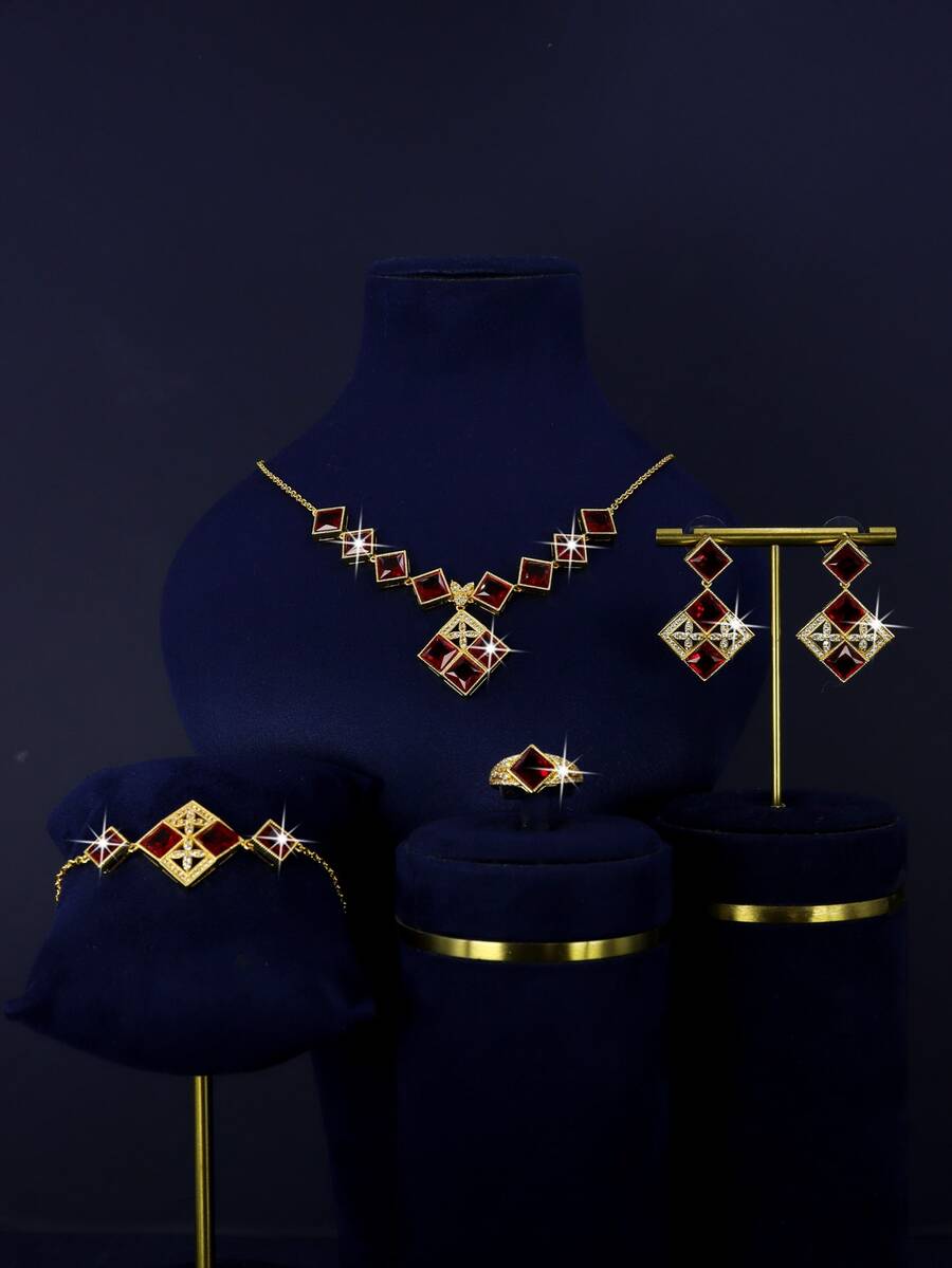 5pcs 18K Gold Plated Luxury Royal Style Square Geometric Tassel Design Bridal Wedding Jewelry Set, Handset White Cubic Zirconia, Including Necklace, Bracelet, Earrings, Ring, Suitable For Daily Wear And Wedding, Wedding Anniversary Gift