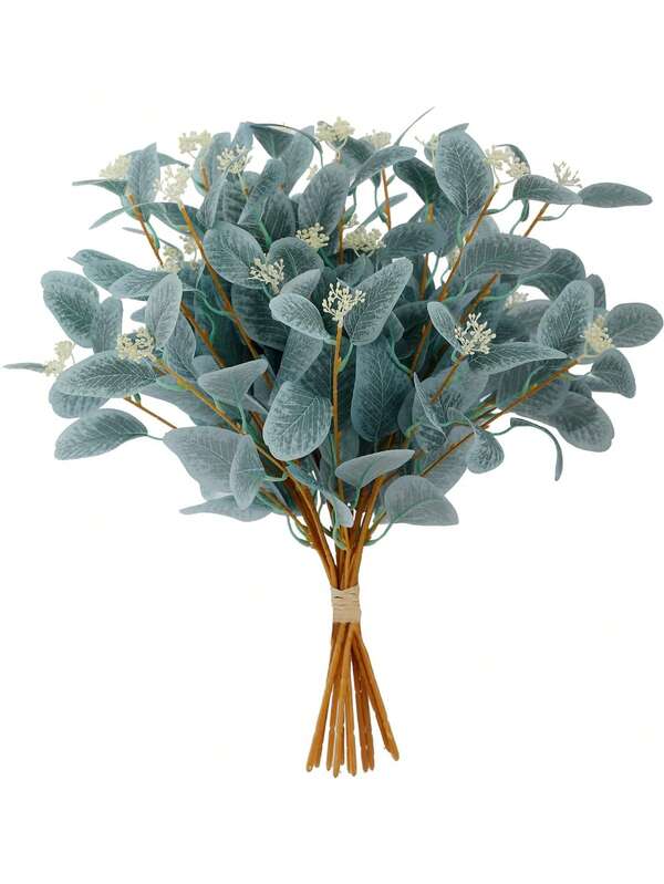 5pcs Artificial Eucalyptus Stems,Fake Eucalyptus Stem With Leaves Berries, Greenery Plants Floral Decorations For Wedding Party Flowers Arrangement Home Decor (Sky Blue)