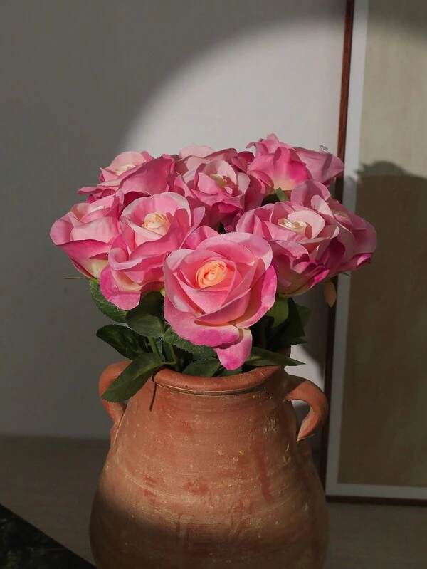 5pcs Artificial Pink & Yellow Rose Bouquet