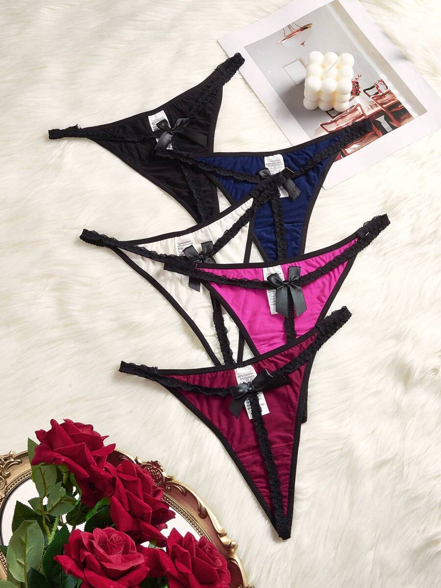 5pcs Butterfly Knot Decorated Lace Trimmed Thong