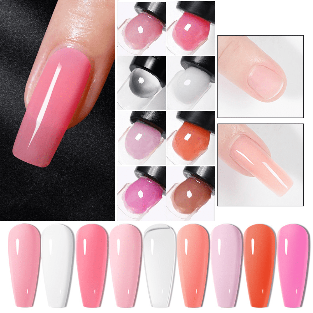 5pcs Crystal Extension Gel Kit: 1pc 15ml Extension Gel+1pc Crystal Clip+1pc Double-side File+1pc Black Gel Brush+1set 20pcs Clear Nail Mold