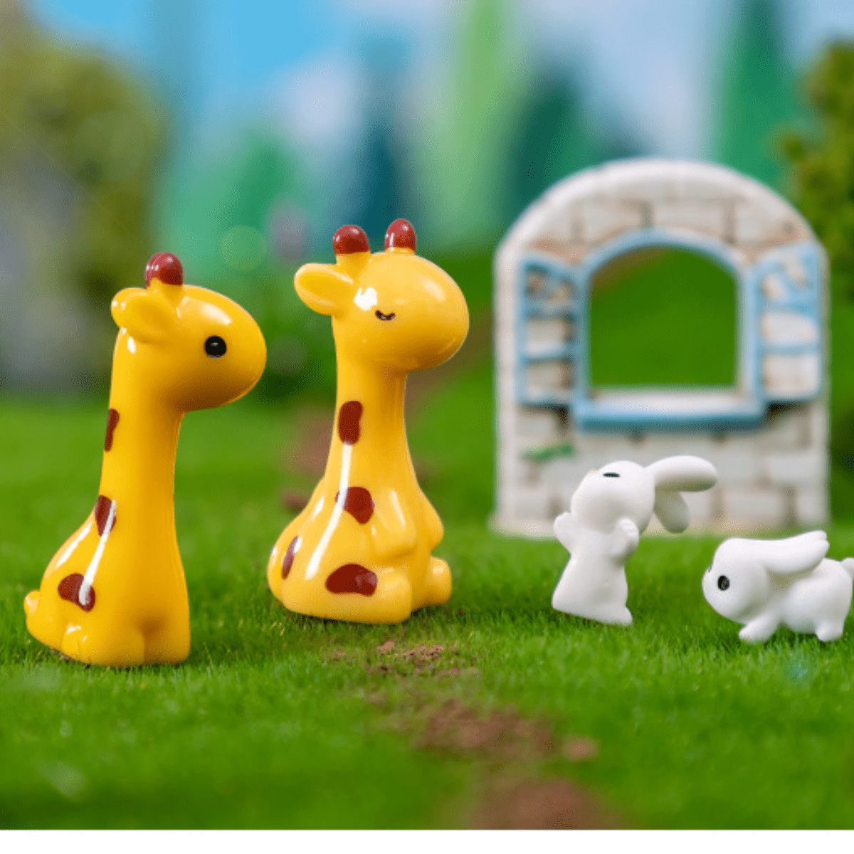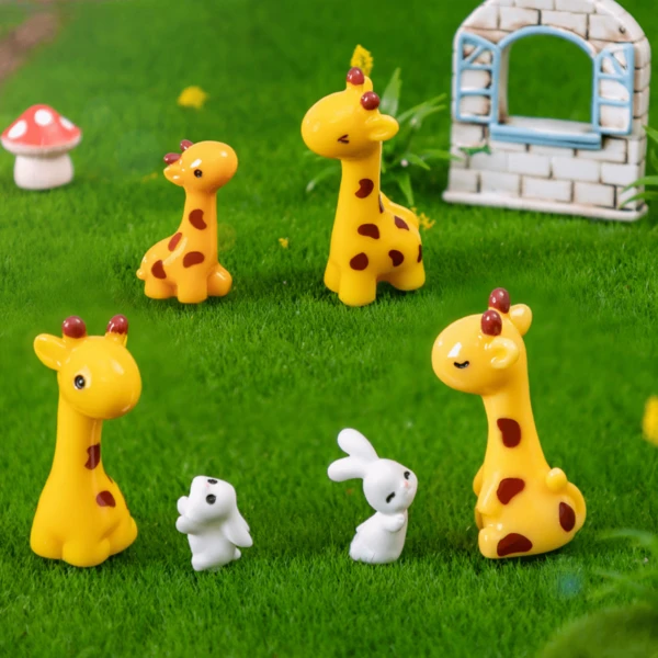 5pcs Cute Giraffe & Rabbit Mini Figurines For Home, Office Desk Miniature Landscape Animal Decoration Accessories