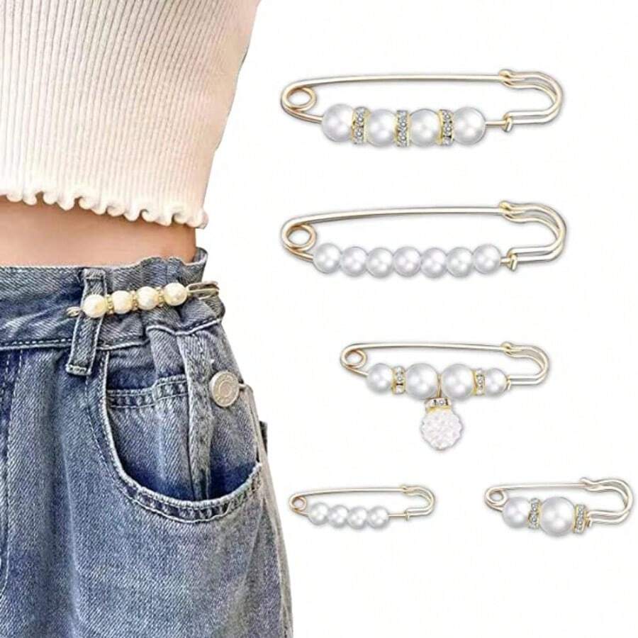 5pcs Fashion Faux Pearl Brooches Pins, Sweater Shawl Clip Waist Pants Extender Pins