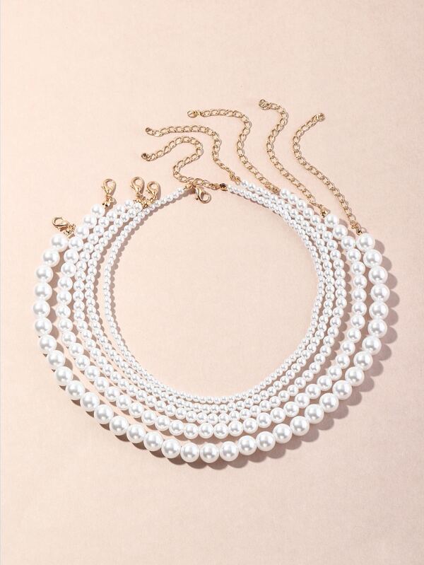 SHEIN Belle 5pcs Faux Pearl Decor Beaded Necklace