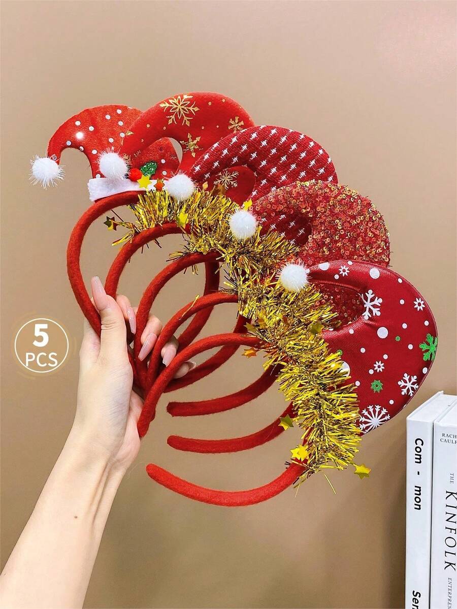 5pcs Girls' Cute Christmas Cartoon Reindeer Antler Headband