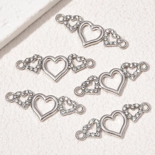 5pcs Heart Linked With Rhinestone Double Pendant Diy Jewelry Accessories, For Women Bracelet & Rope Decorations