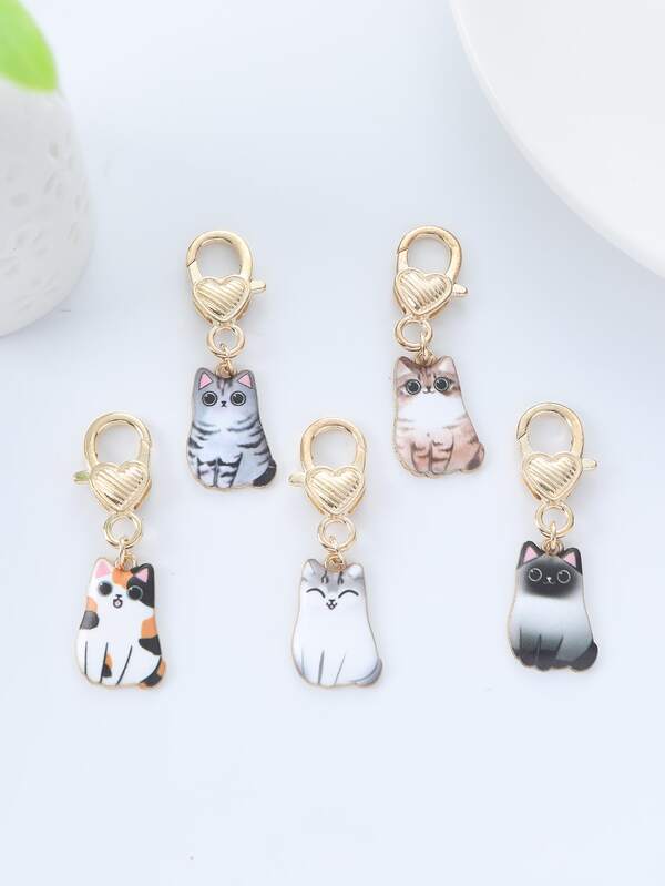 5pcs Metallic Cartoon Cat Design Earphone Case Pendant, Key Chain, Gift For Students' Schoolbags