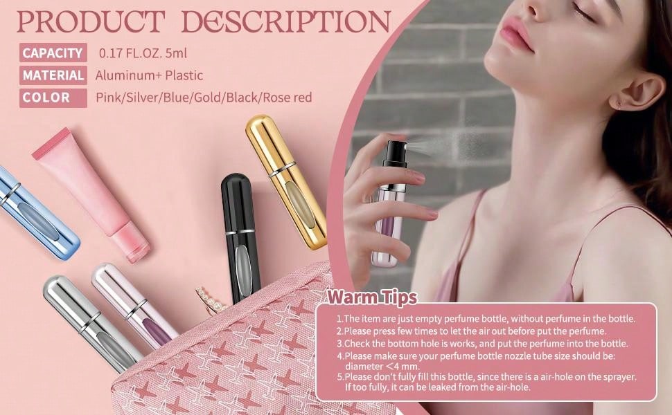5pcs Portable Perfume Travel Refillable Spray Bottle, Fragrance Atomizer