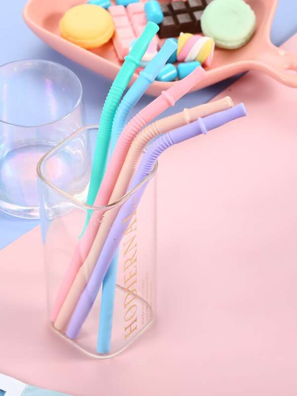 5pcs Random Color Silicone Straw, Nordic Silicone Drinking Straw For Party