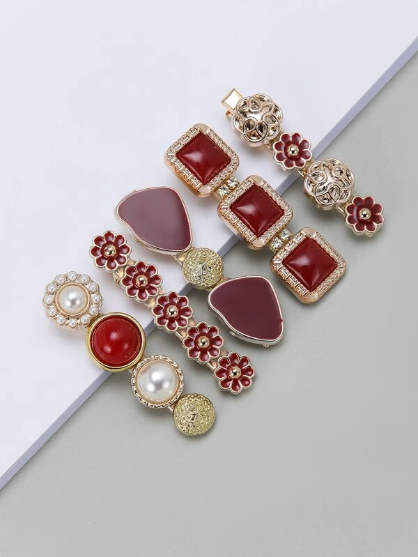 5pcs Rhinestone & Faux Pearl Decor Alligator Hair Clip
