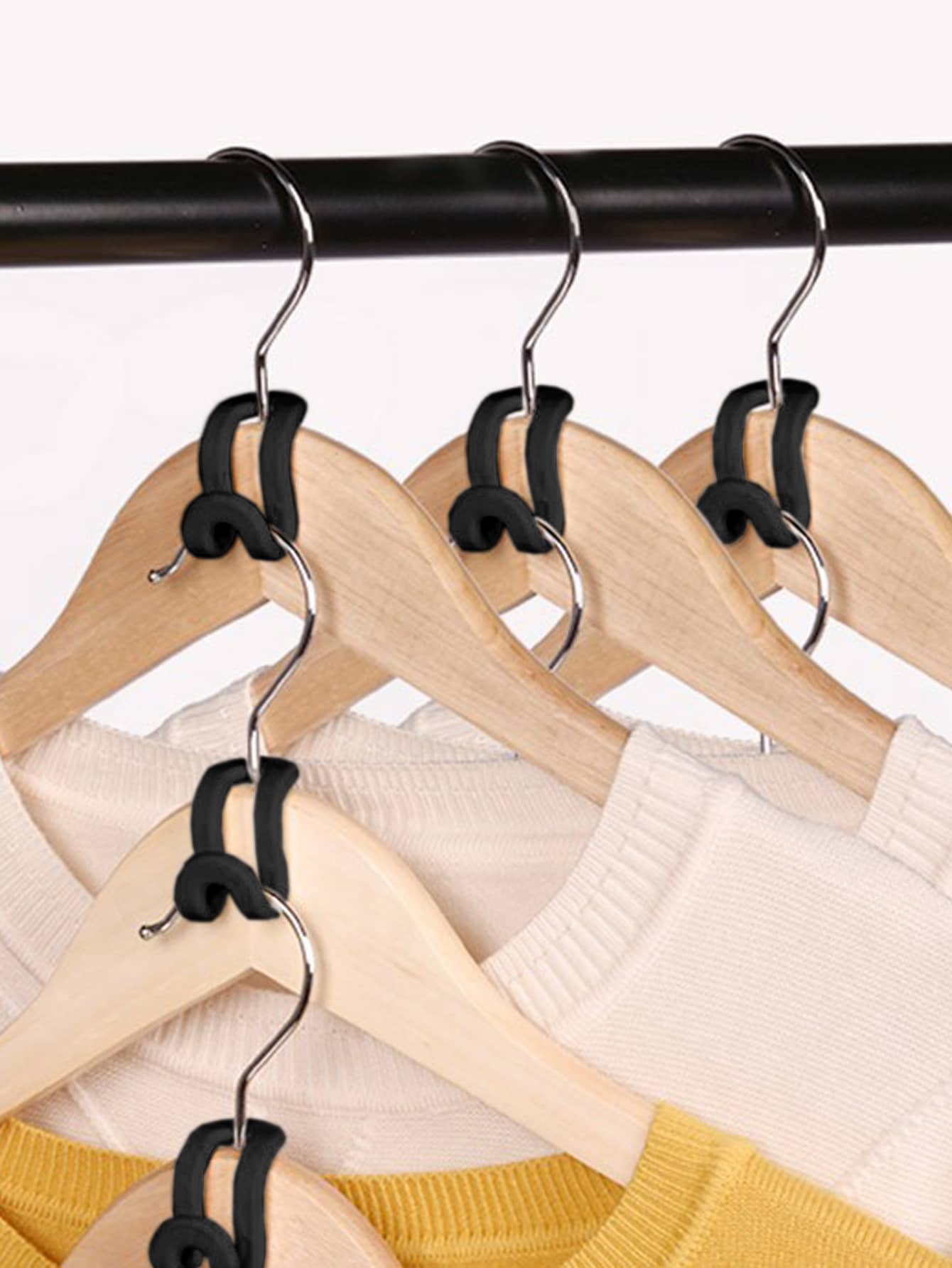 5pcs Solid Color Clothes Hanger Connection Hook, Simple Black Portable Clothes Hanger Hook For Household
