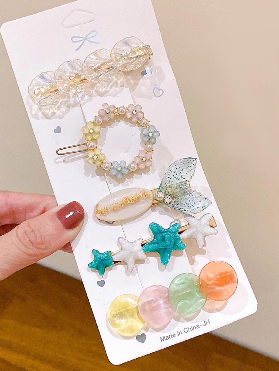 5pcs Starfish & Shell Decor Hair Clip