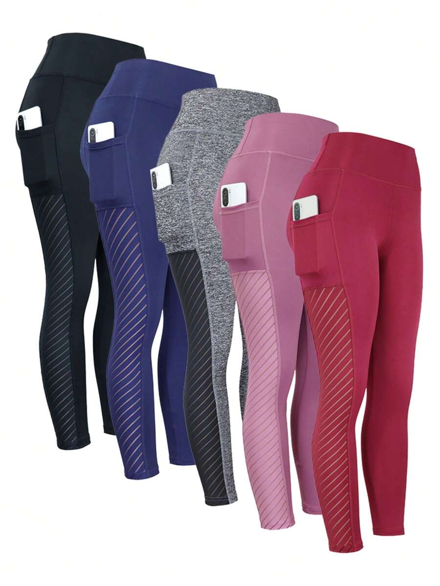 SHEIN Running 5pcs Striped Print Phone Pocket Sports Leggings