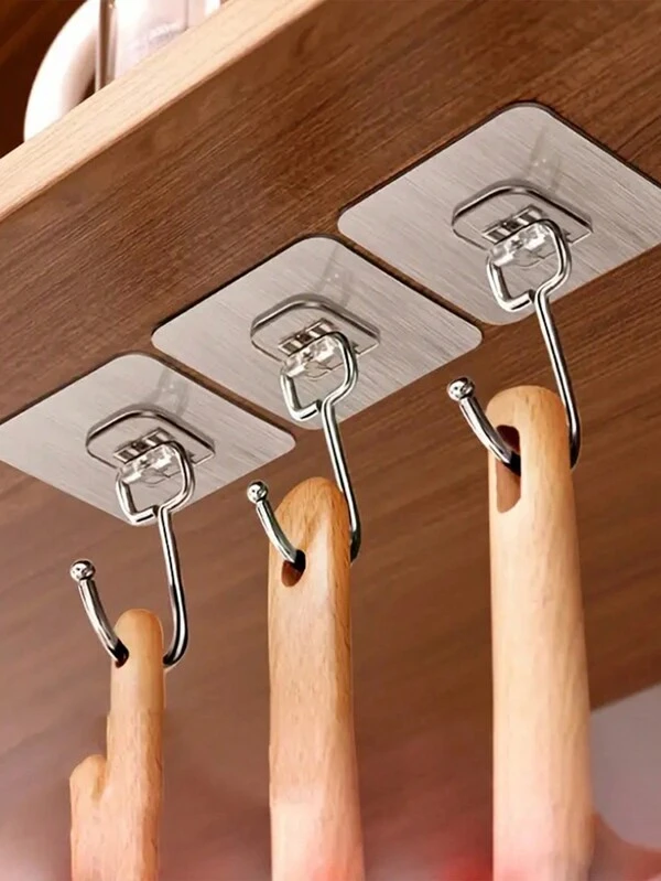 5pcs Wall Hooks, Adhesive Heavy Duty Wall Hooks, Transparent Reusable Seamless Punch-Free Hooks, Waterproof And Oilproof, Bathroom Utility Towel Mug Cups Spatula Can Opener Scissors Hooks, Kitchen Supplies