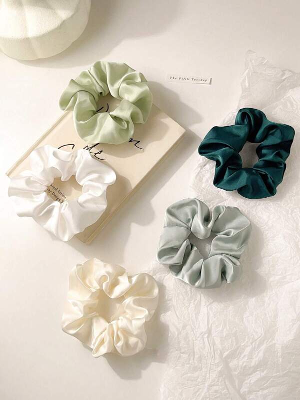 5pcs Women's Solid Color Elastic Simulated Silk Scrunchies With Smooth And Soft Texture, Light Luxury Style