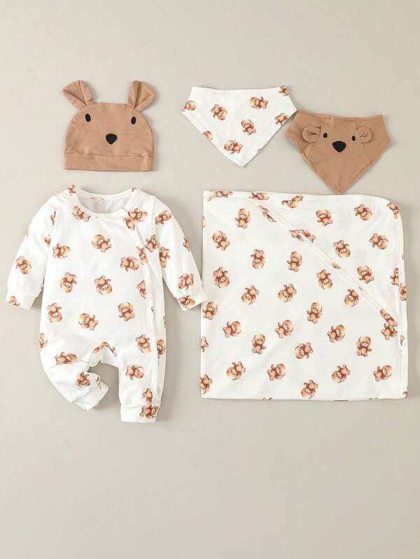 SHEIN 5pcs/Set Baby Boys' Adorable Bear Element Homewear Set
