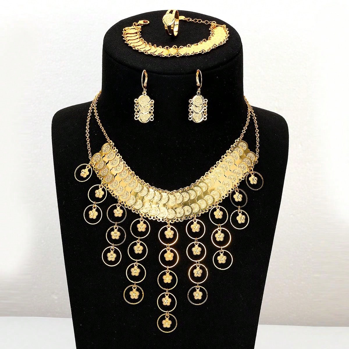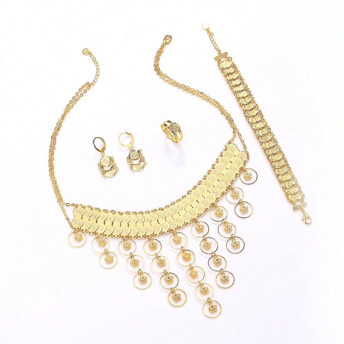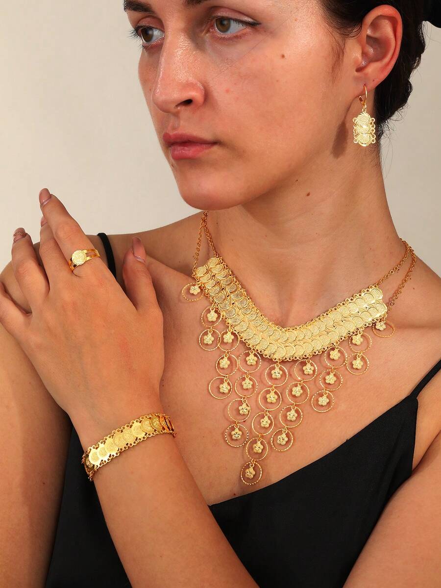 5pcs/Set Deluxe Heavy Metal-Look Ring, Earrings, Necklace, Bracelet Jewelry Set