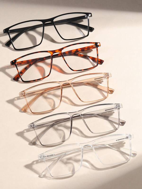 5pcs/Set Men'S Square Pc Frame Anti-Blue Light Clear Lens Retro Eyeglasses, For Business Meeting, Daily Use And Decorative Purpose