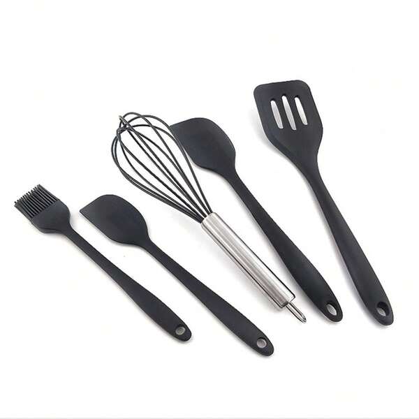 5pcs/Set Silicone Spatula Kit, Kitchen Utensils Including Small Oil Brush, Butter Spreader, Scraper, Whisk, For Cooking, Baking And Mixing, Kitchen Supplies