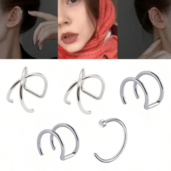 5pcs/Set Stainless Steel Faux Nose Rings Nose Clip Body Jewelry For Men And Women