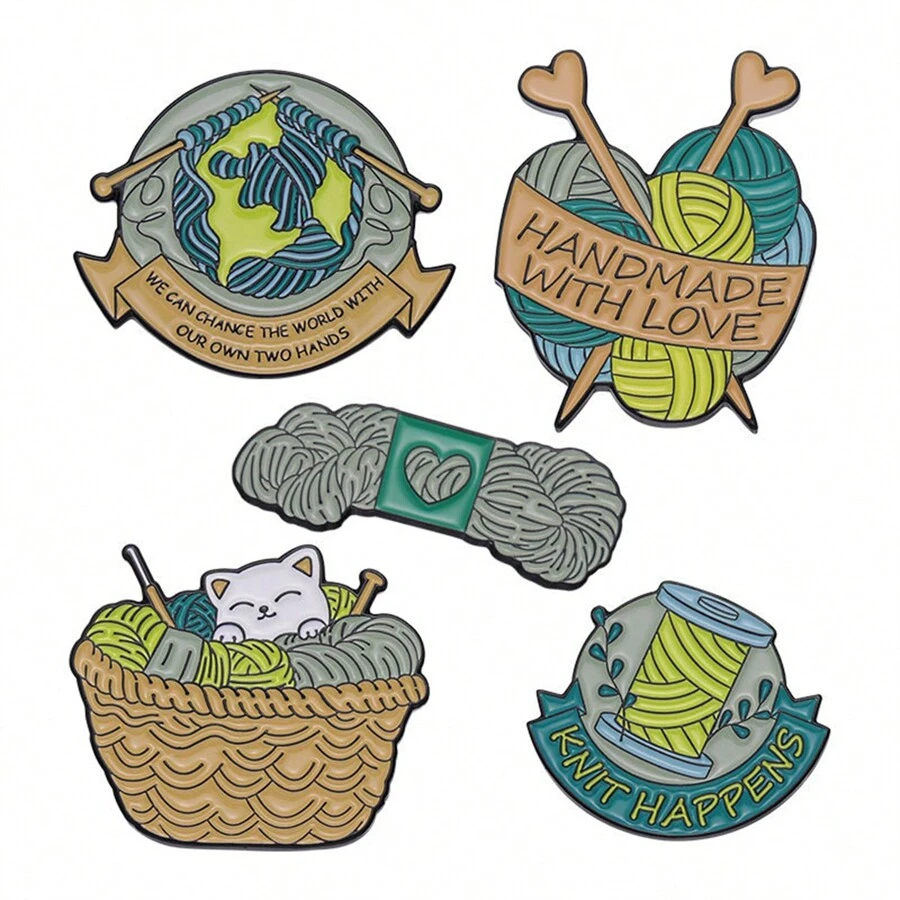 5pcs/Set Warm Ball Of Yarn Enamel Pins Custom HANDMADE WITH LOVE Brooches Lapel Badges Funny Jewelry Gift For Friends