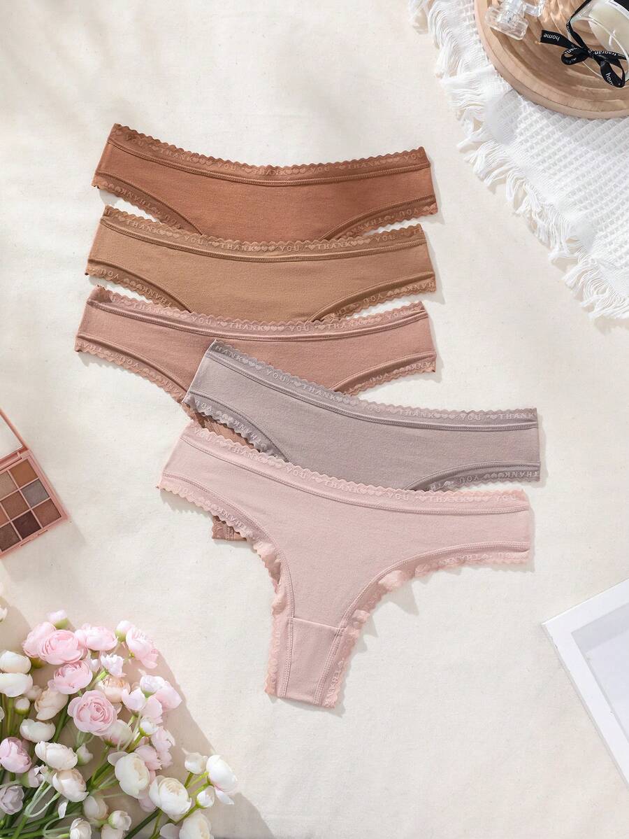 5pcs/set Women's Lace Trimmed Triangle Panties