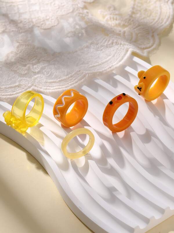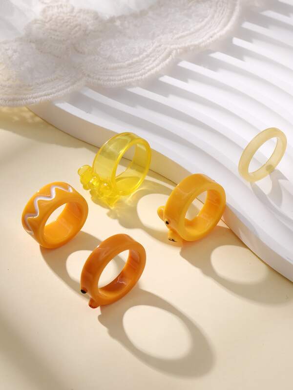 5pcs/set Yellow Fun Animal Cartoon Resin Rings