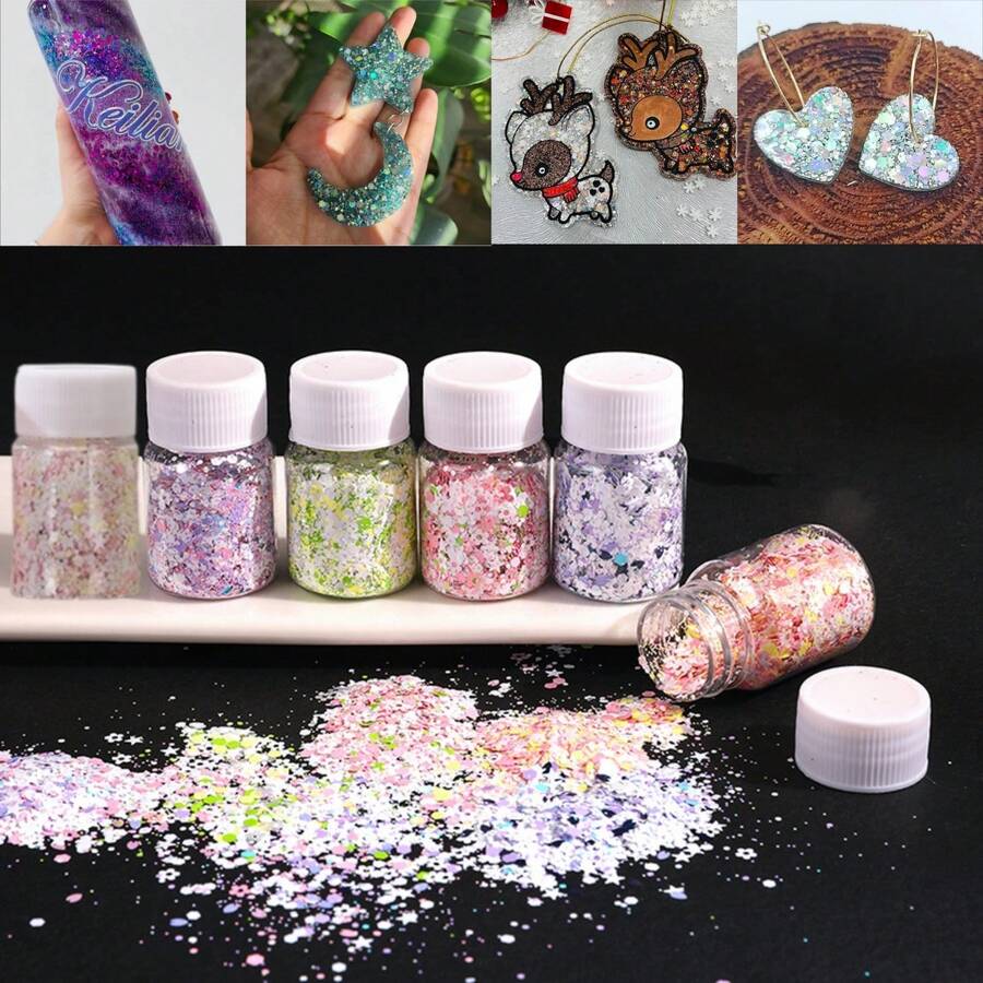 6 Colors Chunky Glitter Flakes - Spring Iridescent Flower Butterfly Shaped Glitter Sequins Confetti Sparkles Sticker Accessories Nail Glitter Assorted Nail Sequins Heart Chunky Glitter Star Nail Flakes Diamond Iridescent Glitter For Acrylic Nails Crafts Resin Epoxy - 0.7oz/Bottle